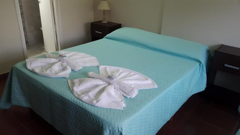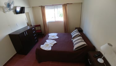 Tenemos habitaciones disponibles para 2, 3 y 4 personas, cada una equipada con cómodas camas sommier, televisión por cable y baño privado. Nuestras habitaciones ofrecen un ambiente acogedor y relajante para que puedas disfrutar de una estancia placentera y tranquila. Tanto si viajas en pareja, en familia o con amigos, tenemos el espacio perfecto para satisfacer tus necesidades. El sommier garantiza un descanso óptimo, mientras que la televisión por cable te brinda entretenimiento variado. Además, contar con un baño privado te permite disfrutar de mayor privacidad y comodidad. Nuestras habitaciones están diseñadas pensando en tu confort, para que te sientas como en casa durante tu estadía. ¡Esperamos poder recibirte pronto!